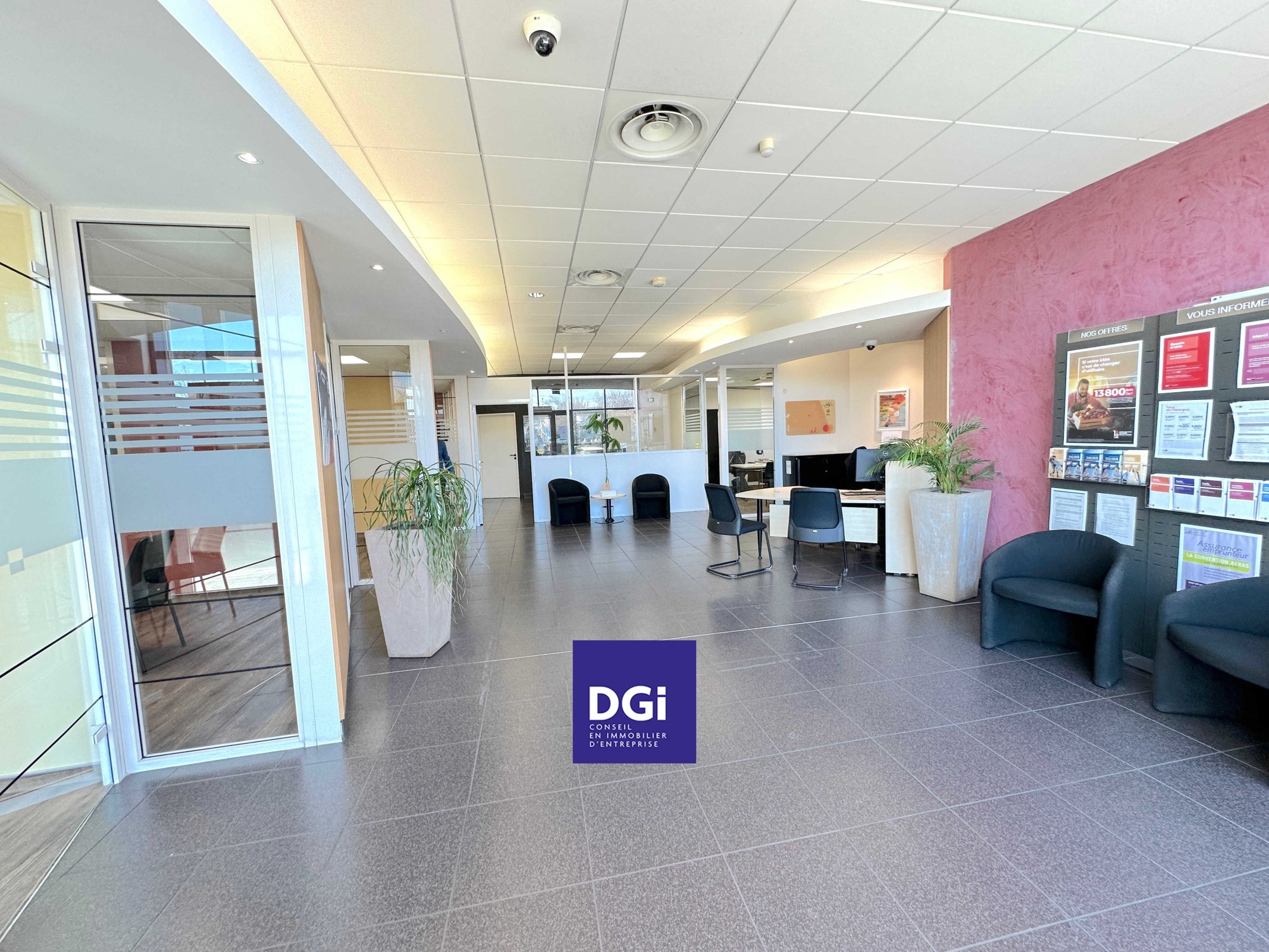 Espace décloisonnable actuellement aménagé avec des bureaux vitrés. Local informatique, local social, sanitaires.
