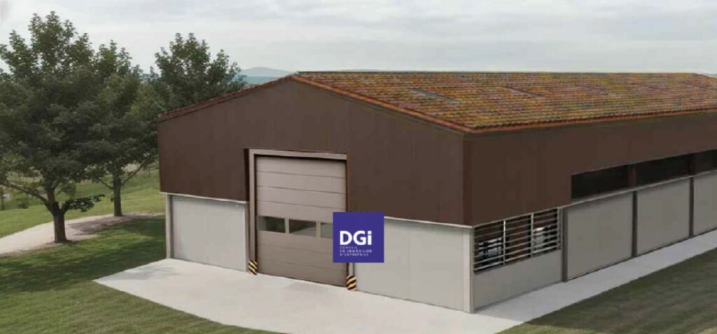 - Un local d'activité de 350 m2 avec porte sectionnelle 4m/4m, dalle béton, fenêtres, sanitaire.