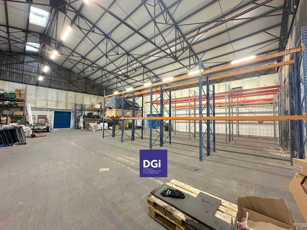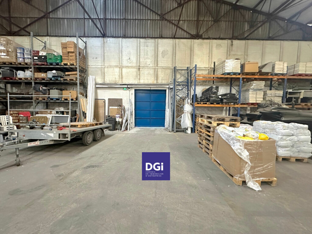 Entrepôt de 825 m2 avec quais filant, accès de plain pied, 2 portails coulissants, dalle béton au sol.