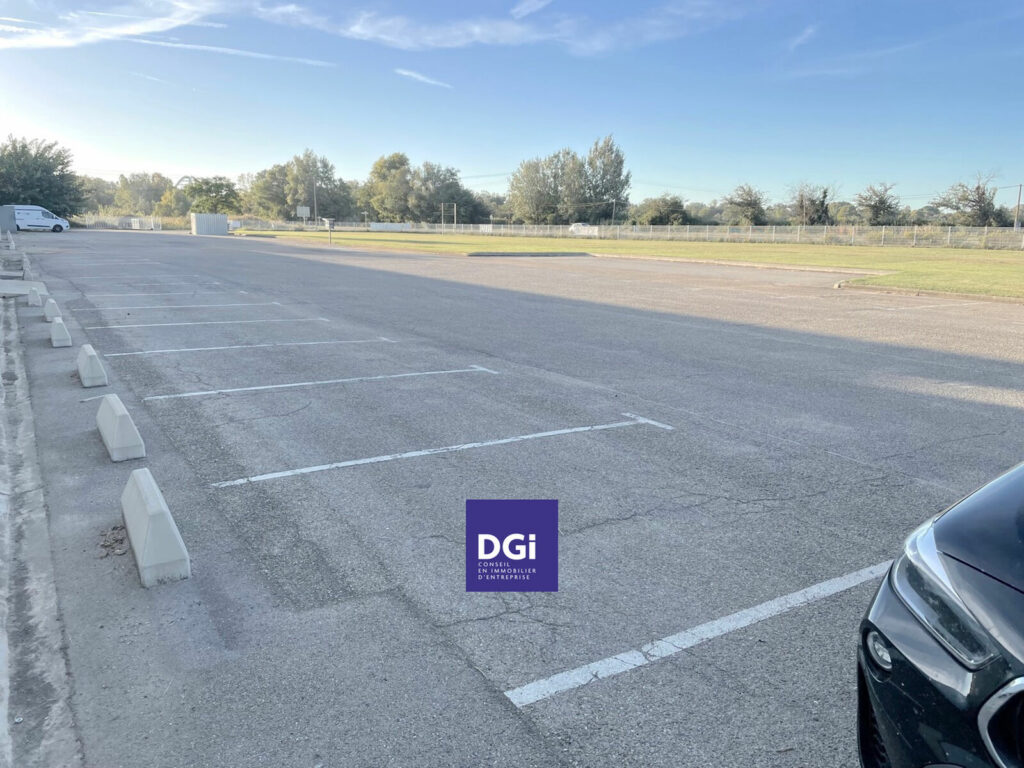 Grand parking sur axe passant.