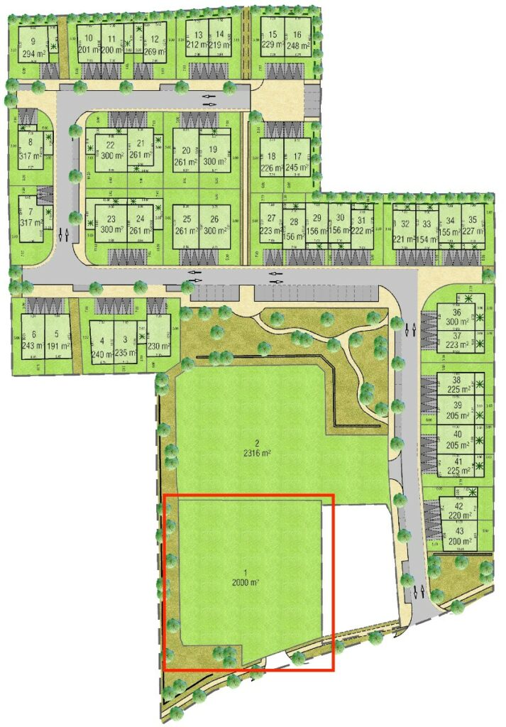 Dans un lotissement neuf, visible depuis un axe passant terrain construcible de 2000 m2 à vendre.